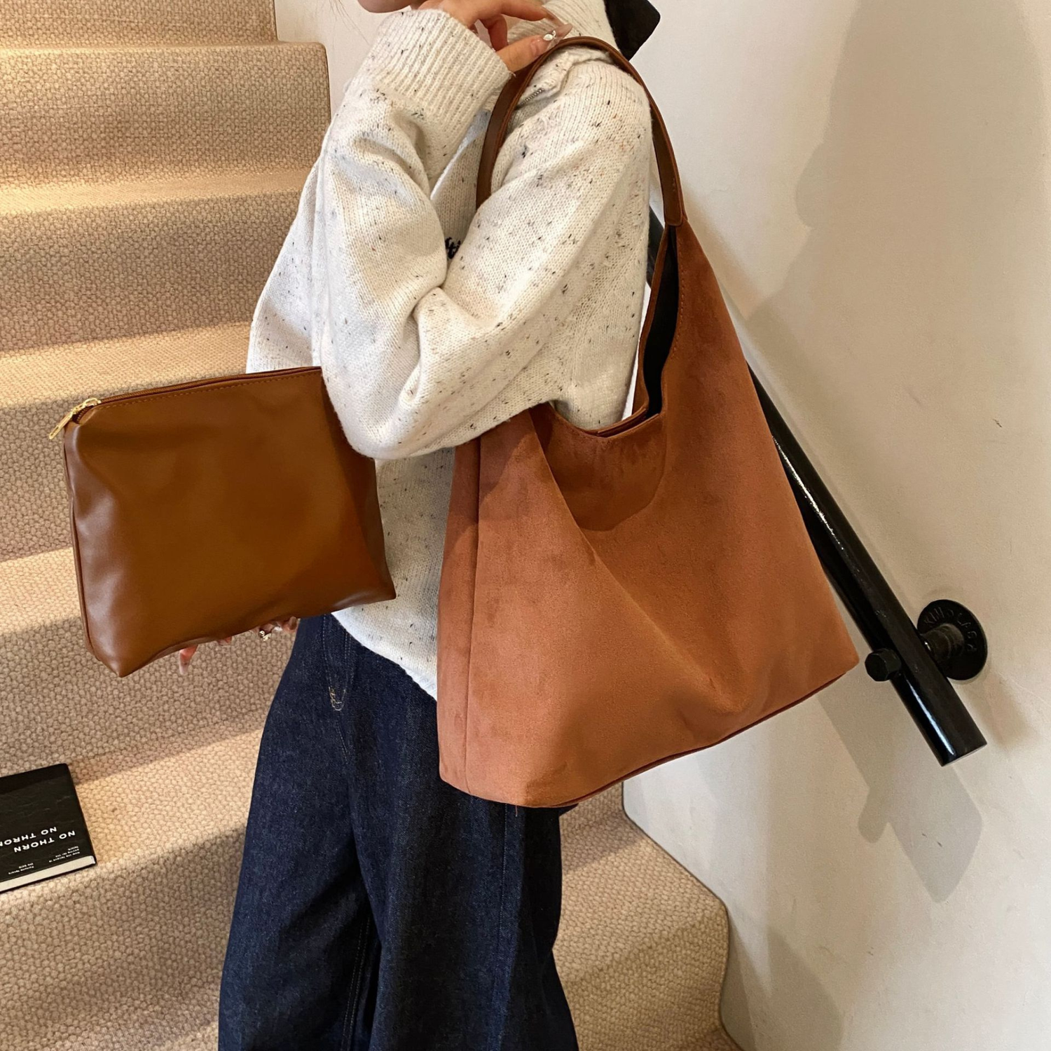 Darf ich vorstellen: Iris – die vom Herbst inspirierte Tragetasche, die großzügig Platz für dein Notebook, deine Kopfhörer und deine gesamte Make-up-Kollektion bietet.